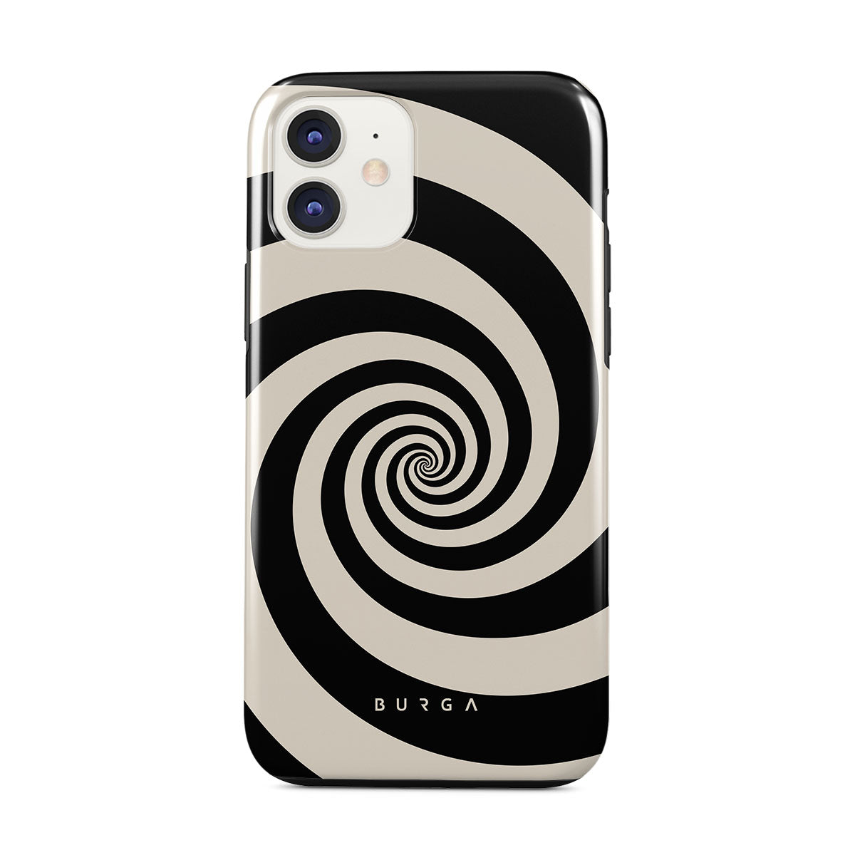 En este diseño: espiral blanco y negro, patrón hipnótico.