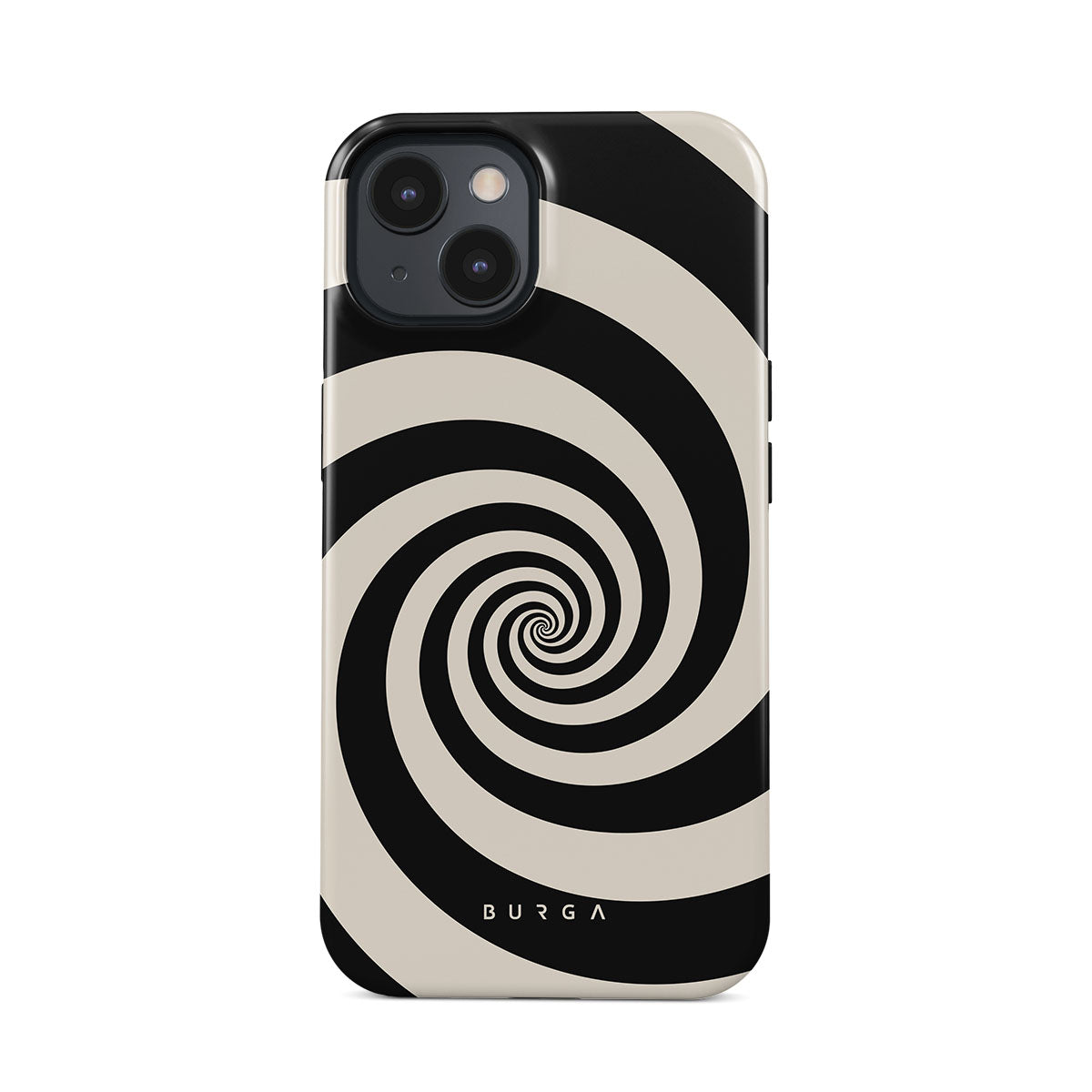 En este diseño: espiral blanco y negro, patrón hipnótico.