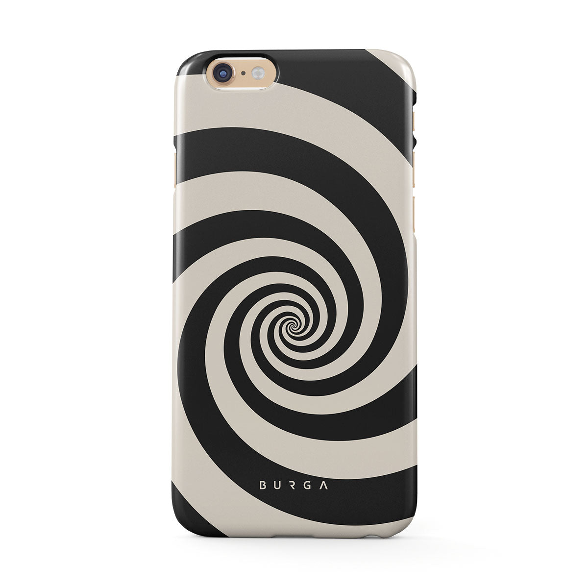 En este diseño: espiral blanco y negro, patrón hipnótico.