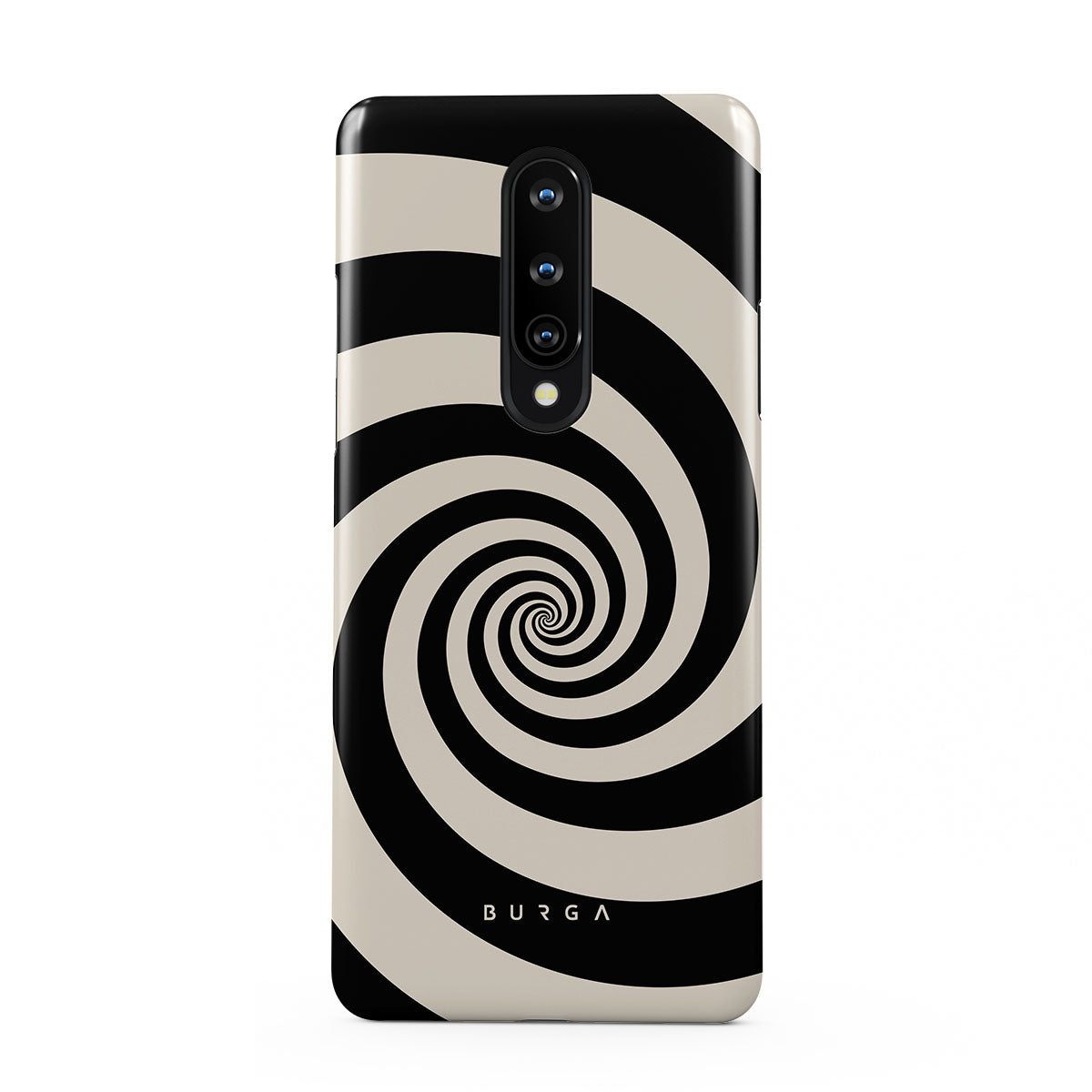 En este diseño: espiral blanco y negro, patrón hipnótico.