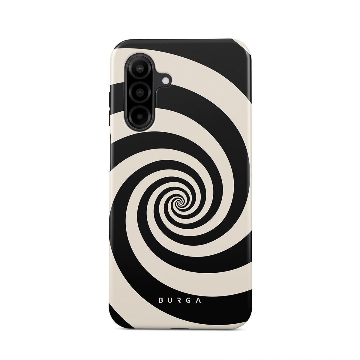 En este diseño: espiral blanco y negro, patrón hipnótico.