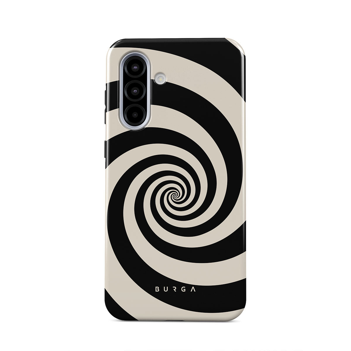 En este diseño: espiral blanco y negro, patrón hipnótico.