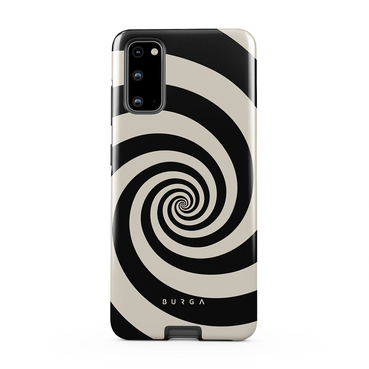 En este diseño: espiral blanco y negro, patrón hipnótico.