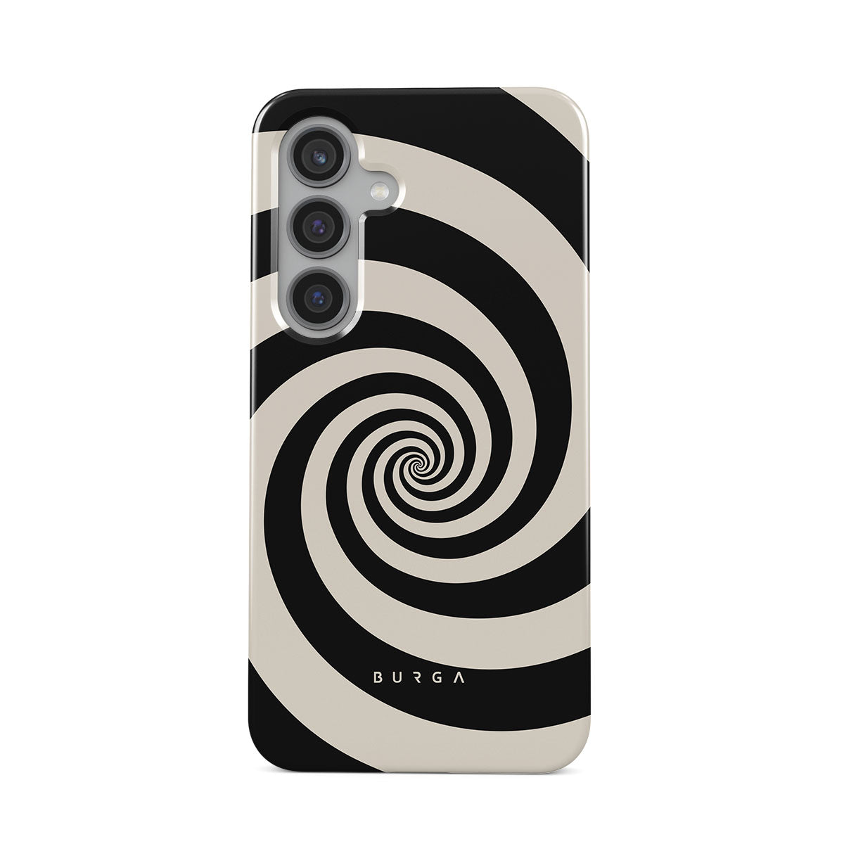 En este diseño: espiral blanco y negro, patrón hipnótico.