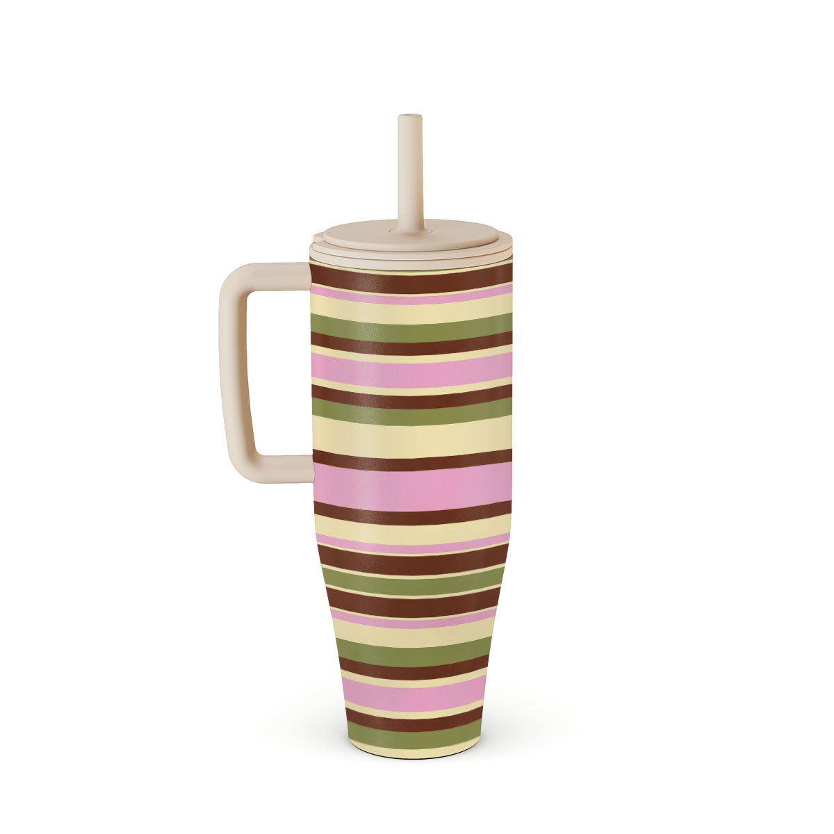 Este vaso de 40 oz/1.2 l mantiene tus bebidas calientes por 12 horas, frías durante todo el día y tu bolsa completamente seca gracias a una tapa de verdad hermética con popote. Cabe en el portavasos de tu coche, tiene un asa que se ajusta a ti a la perfección y está disponible en una paleta de colores que combinan con cualquiera de tus looks.