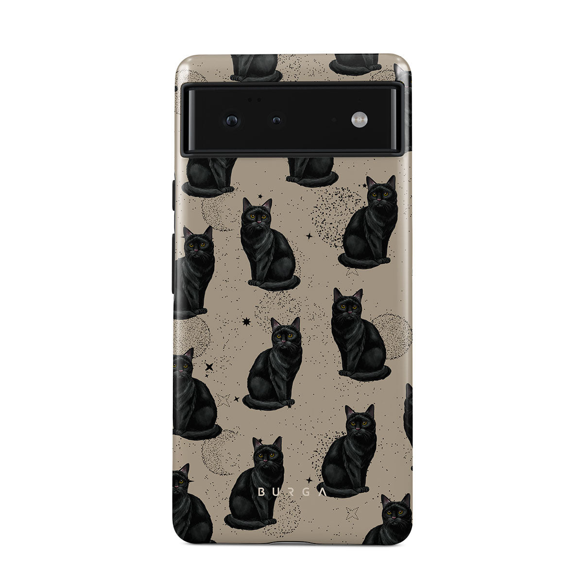 En este diseño: gatos negros, símbolos místicos.