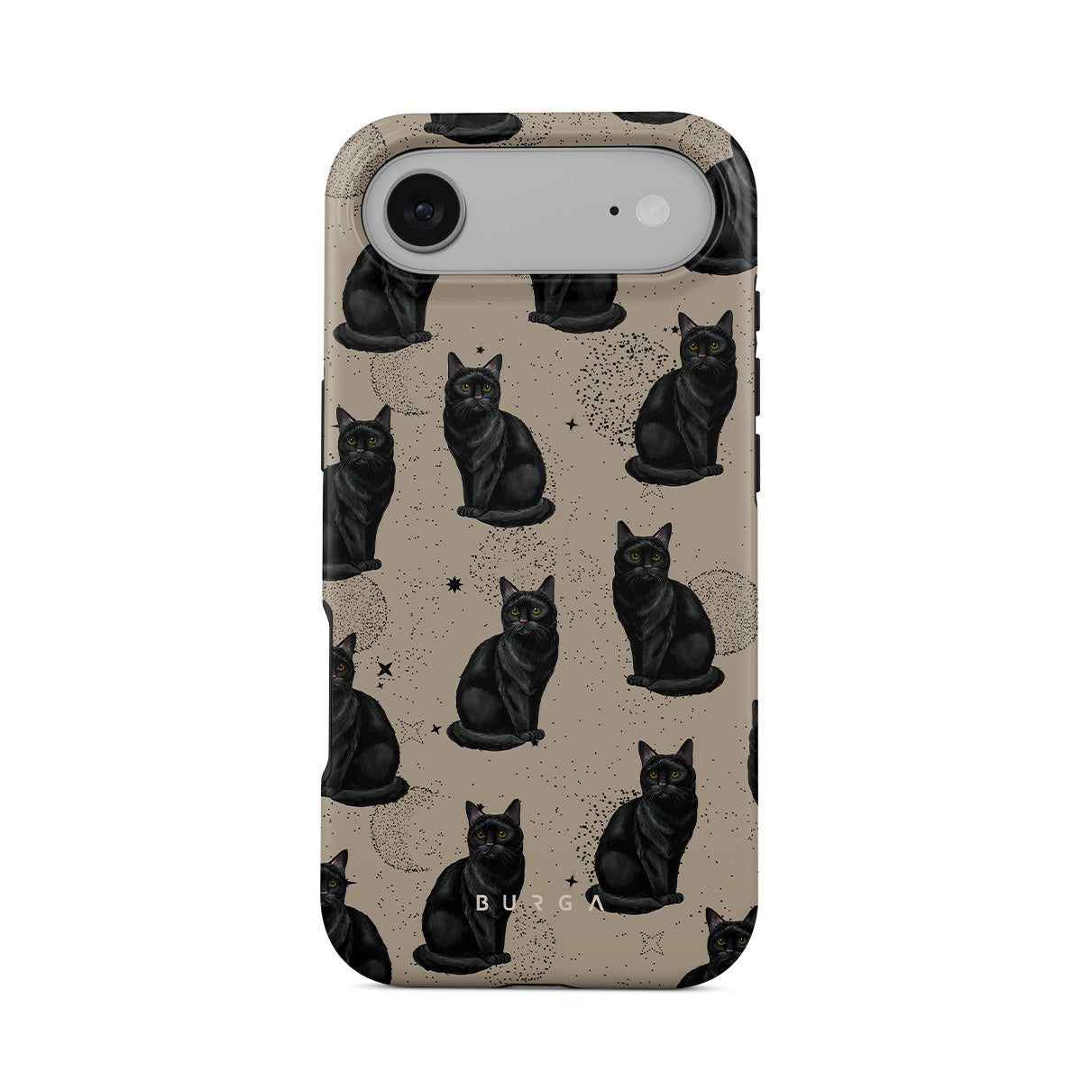 En este diseño: gatos negros, símbolos místicos.