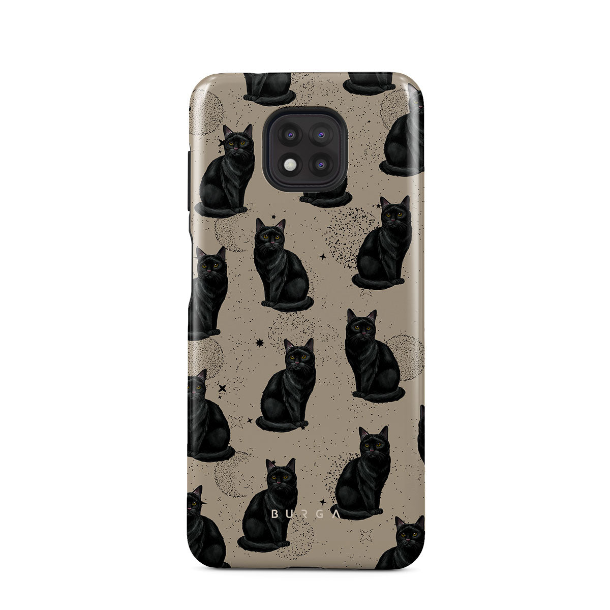 En este diseño: gatos negros, símbolos místicos.