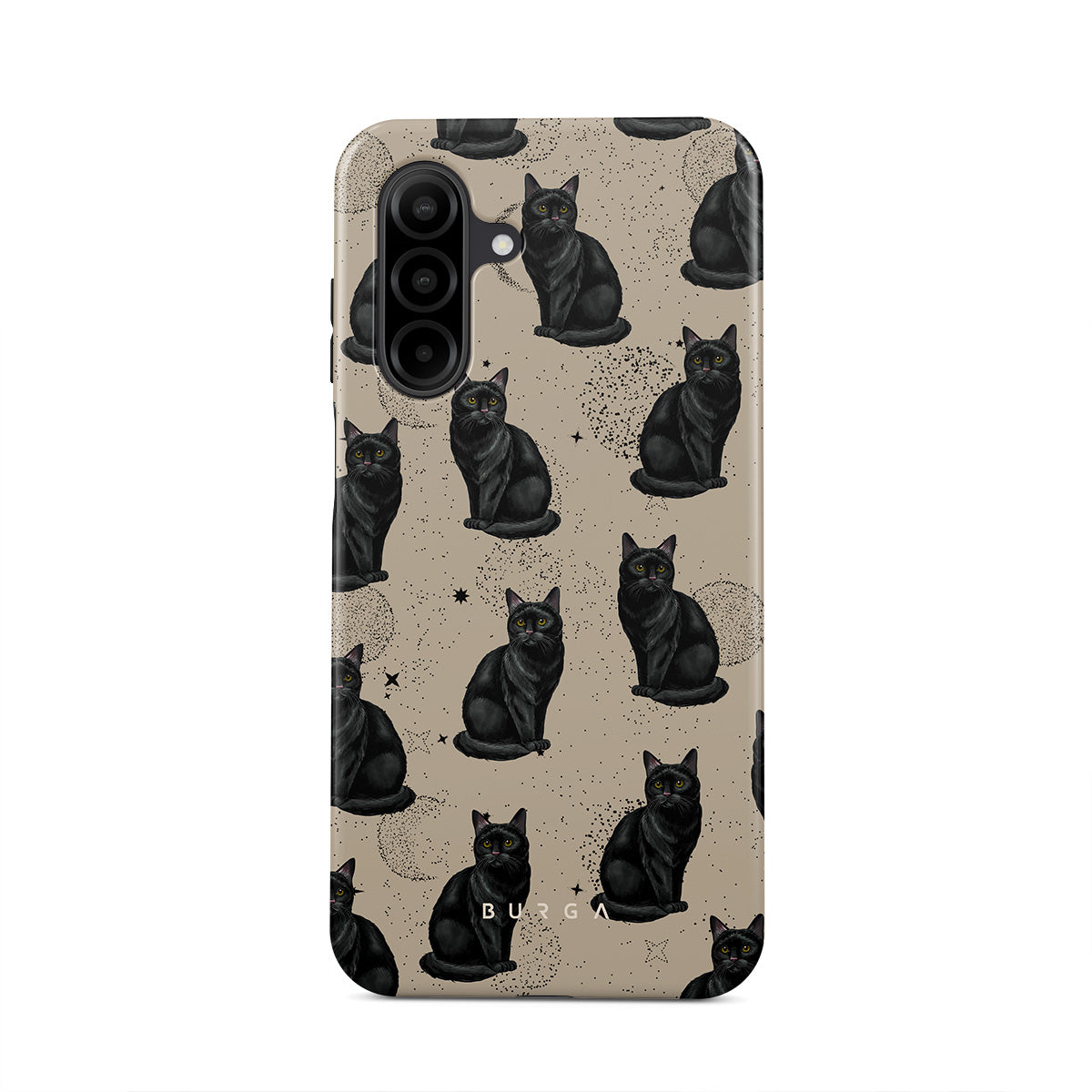 En este diseño: gatos negros, símbolos místicos.