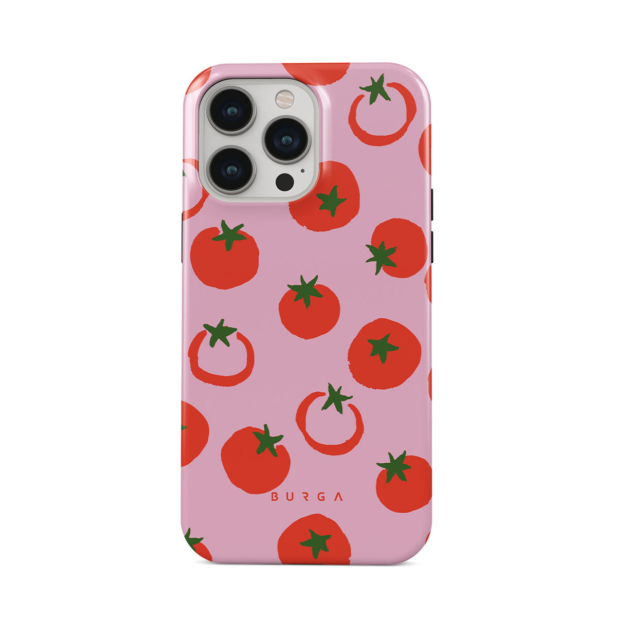 En este diseño: tomates, colores audaces en rojo y rosa.