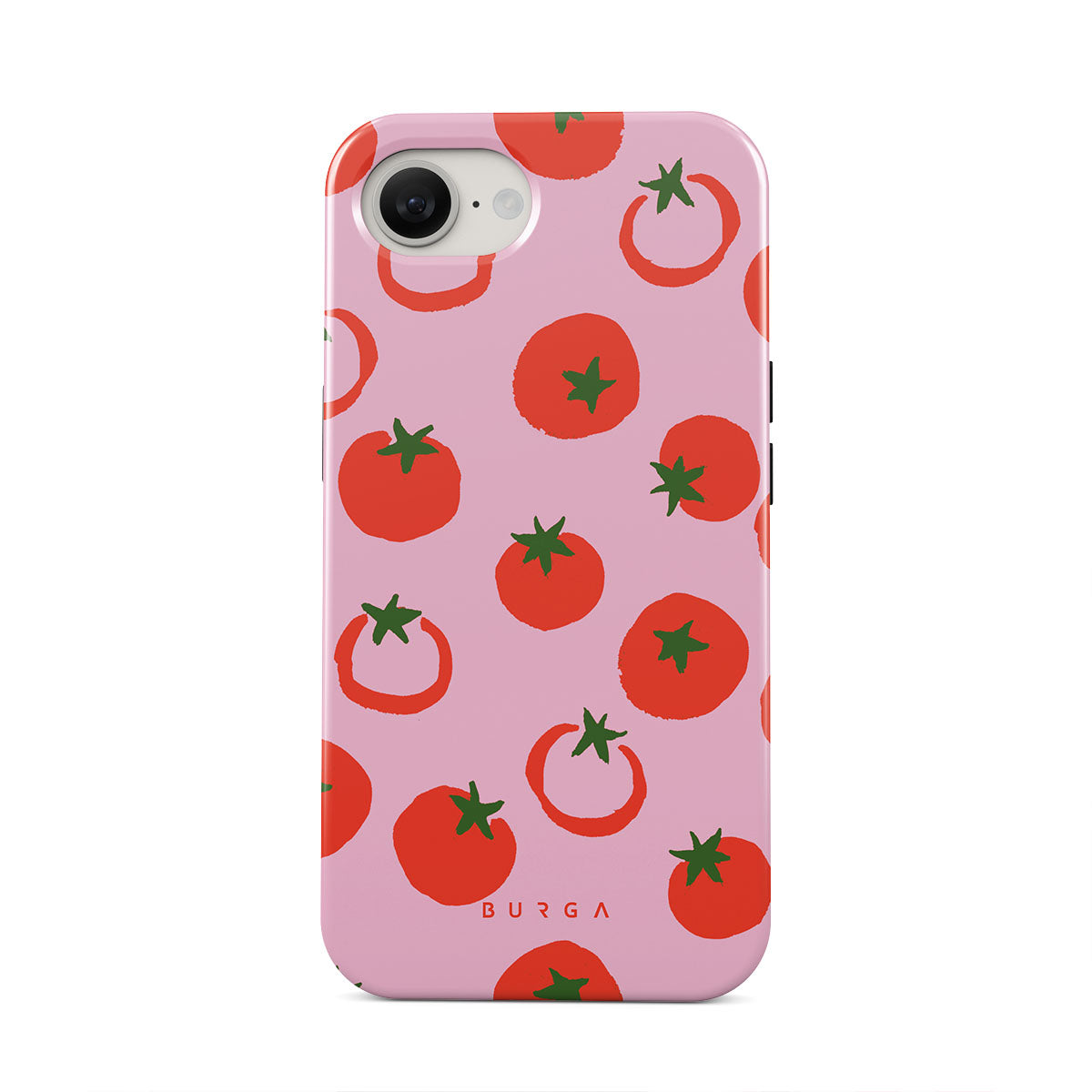En este diseño: tomates, colores audaces en rojo y rosa.