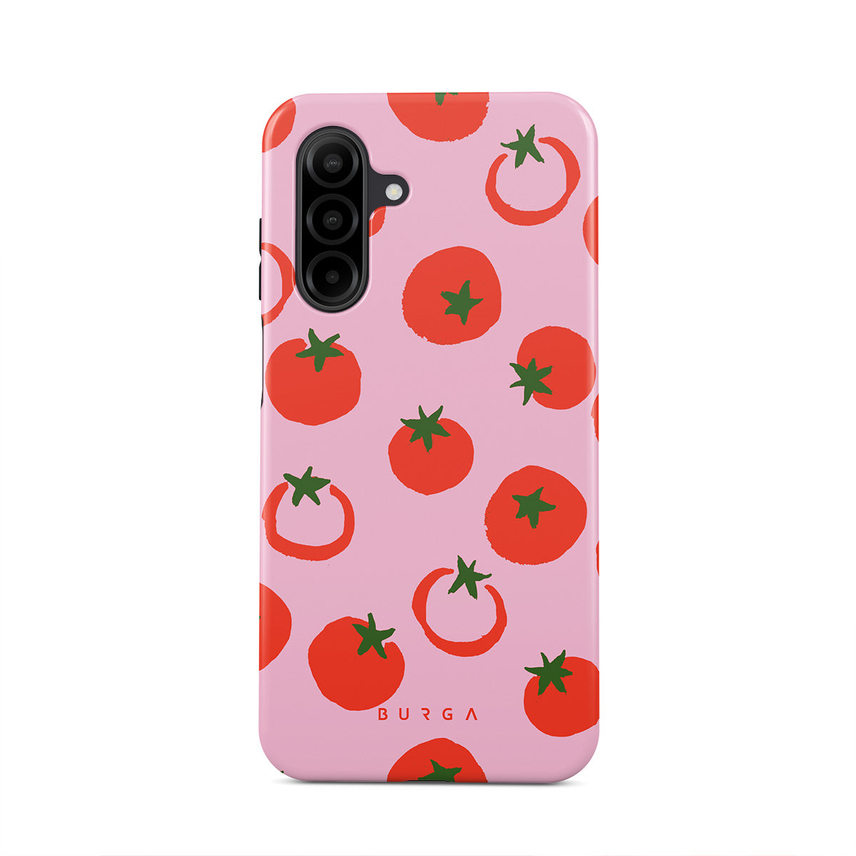 En este diseño: tomates, colores audaces en rojo y rosa.