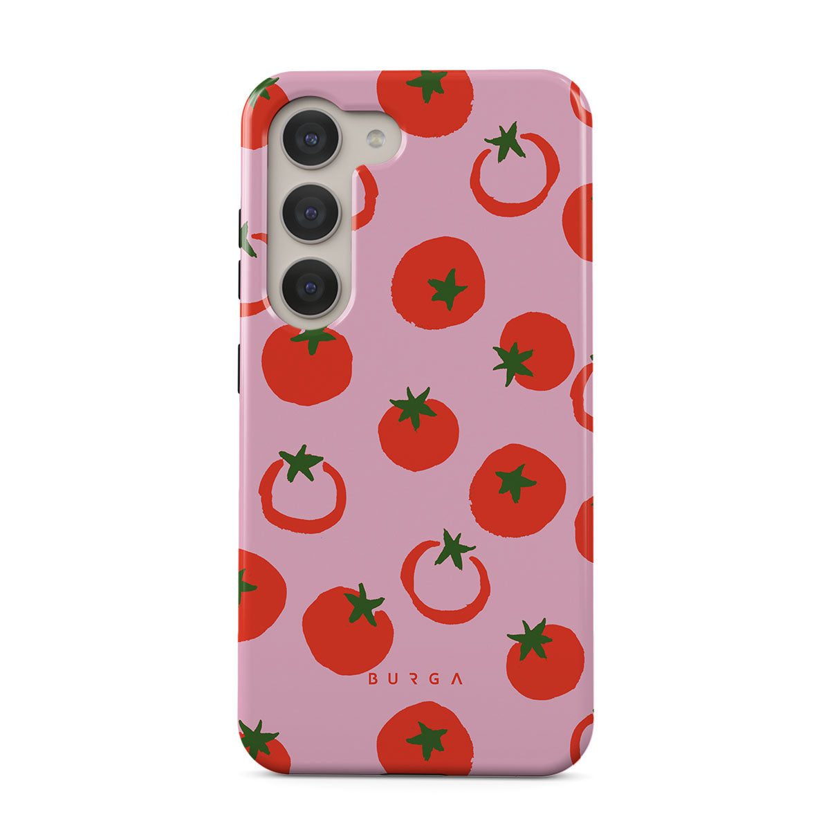 En este diseño: tomates, colores audaces en rojo y rosa.