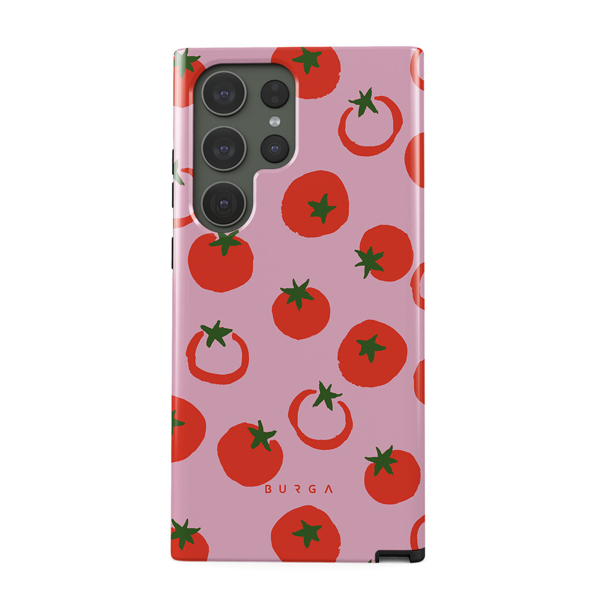 En este diseño: tomates, colores audaces en rojo y rosa.