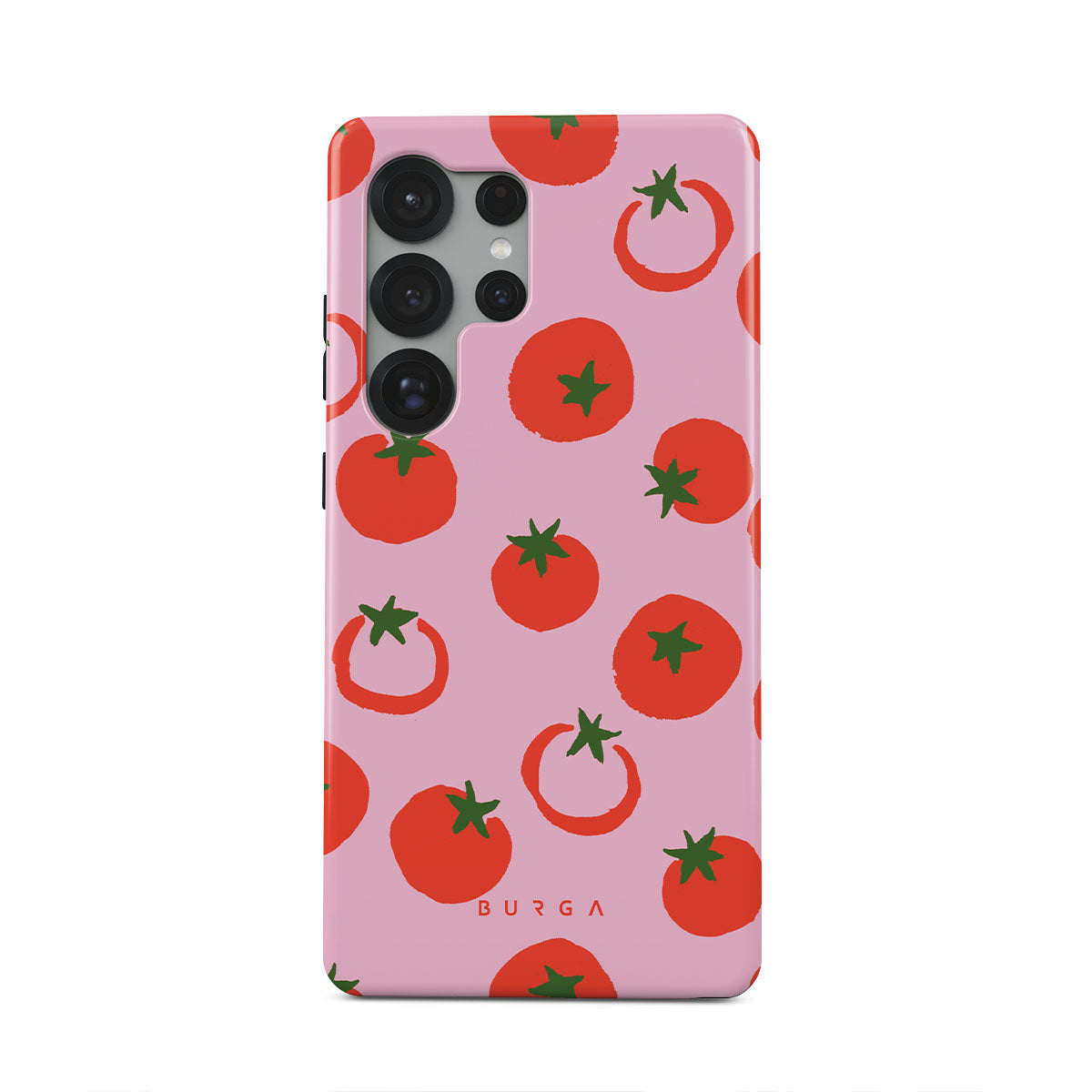 En este diseño: tomates, colores audaces en rojo y rosa.
