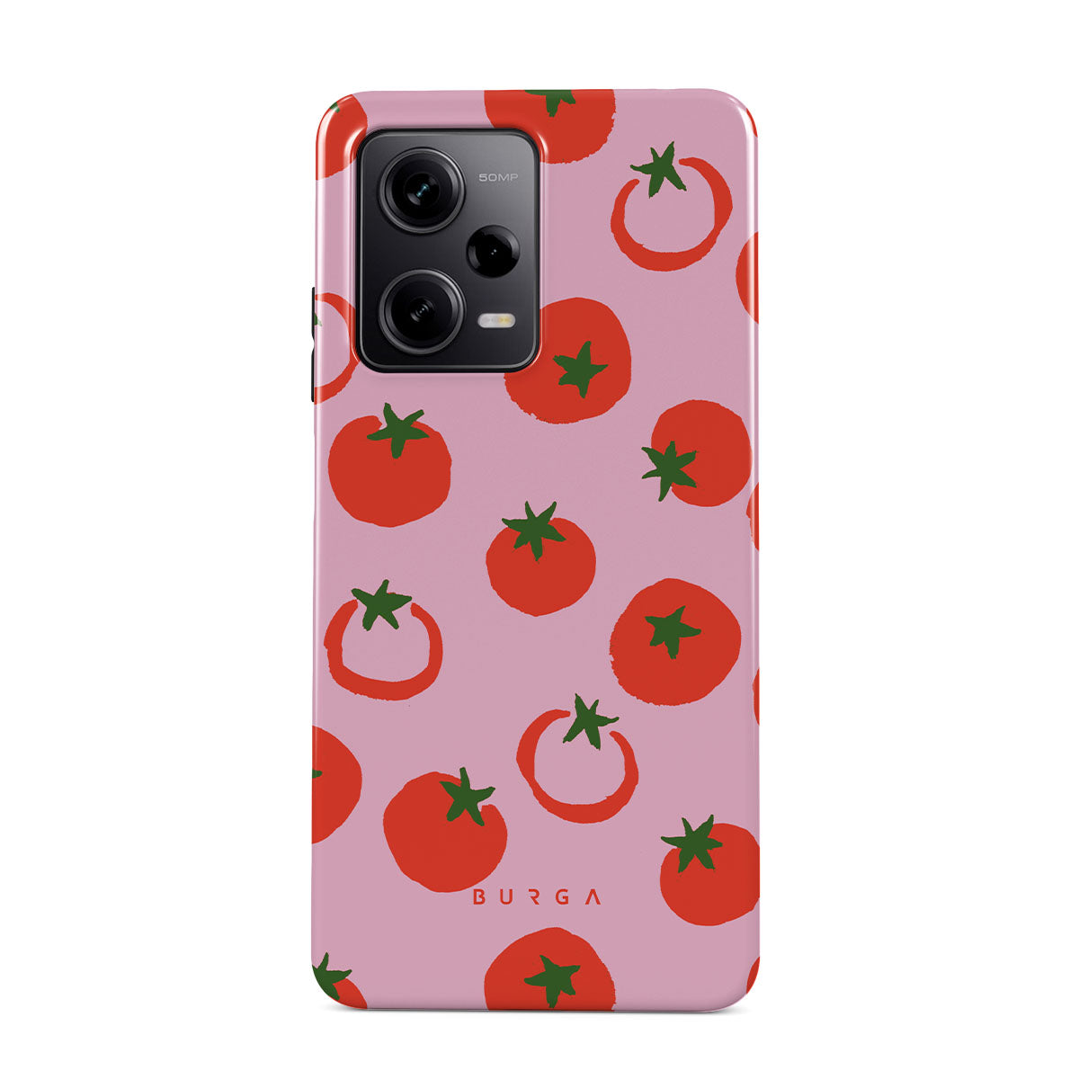 En este diseño: tomates, colores audaces en rojo y rosa.