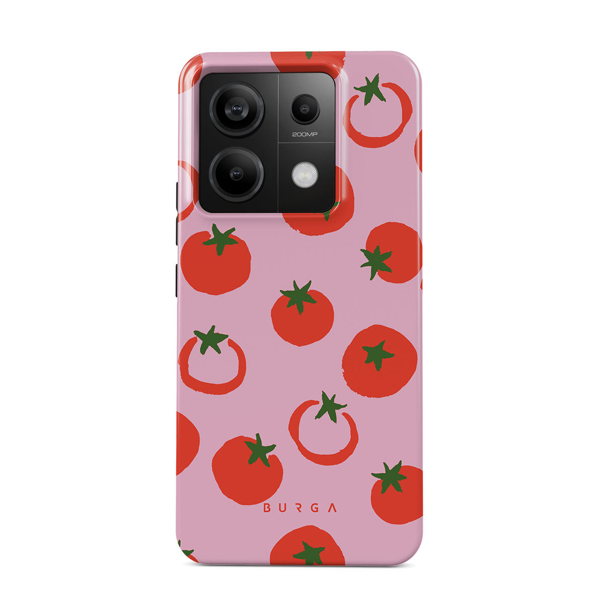 En este diseño: tomates, colores audaces en rojo y rosa.