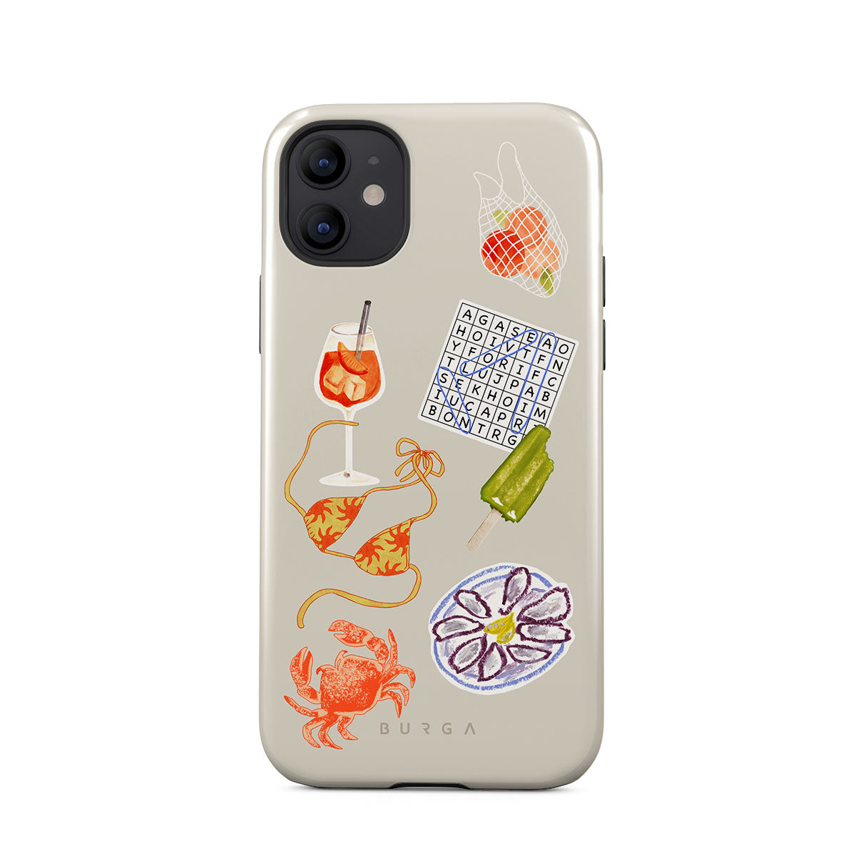En este diseño: cangrejo, plato de ostras, paleta helada, crucigrama, cóctel spritz, top de bikini, frutas.