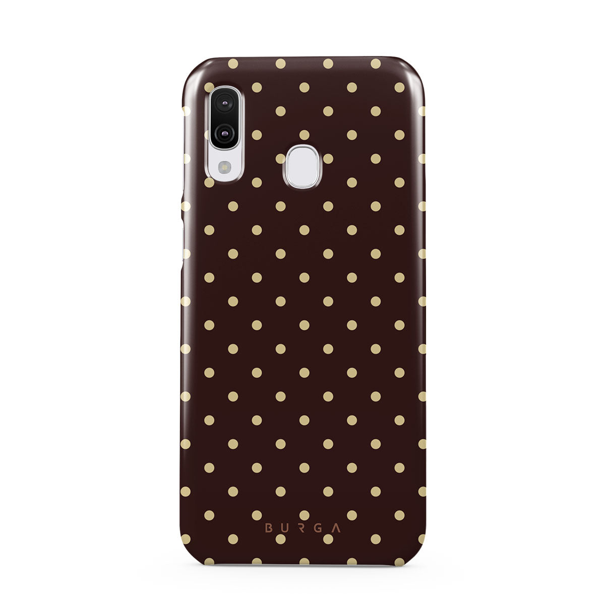 En este diseño: fondo marrón, lunares beige.