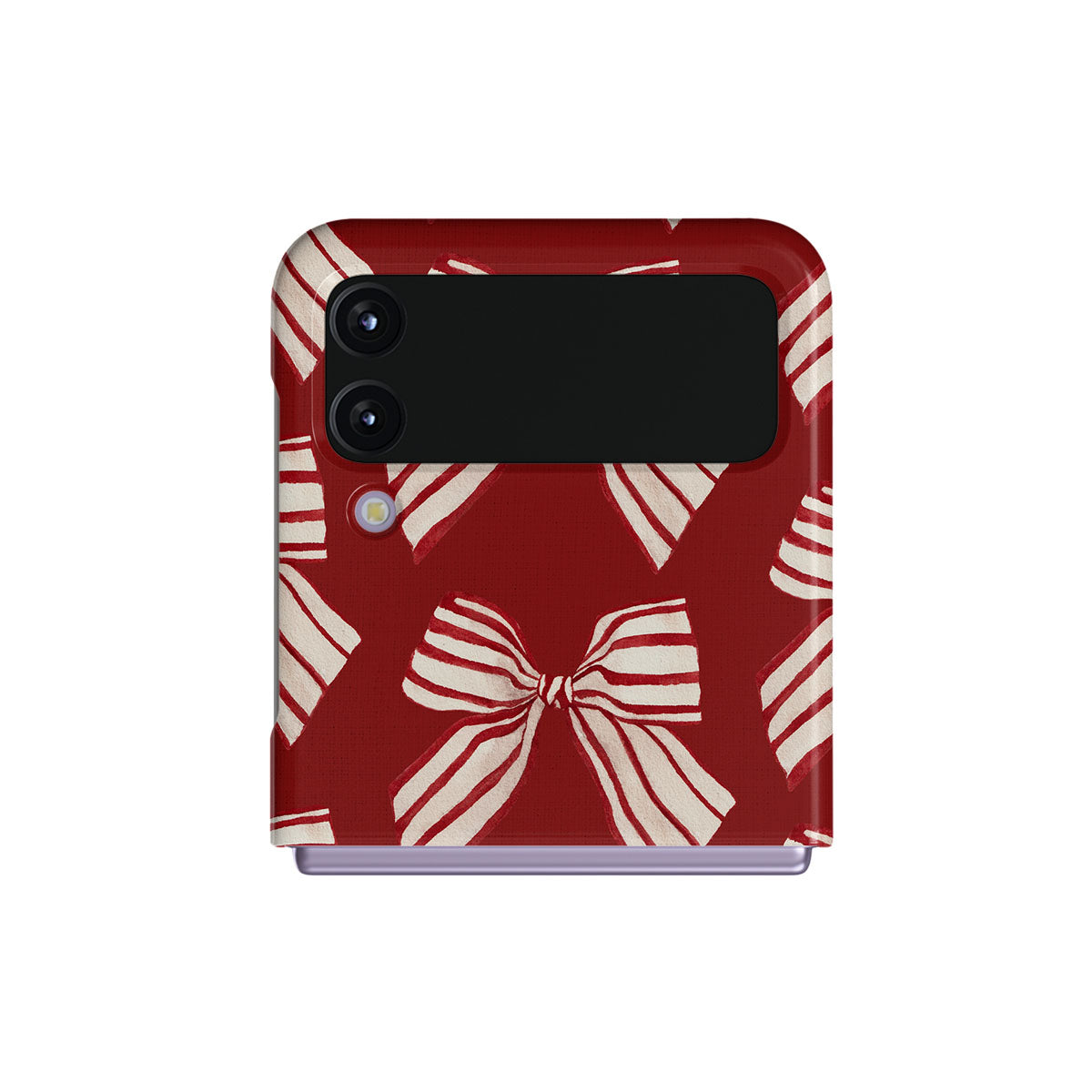 El diseño presenta: moños, rayas, rojo, blanco, motivos navideños.
