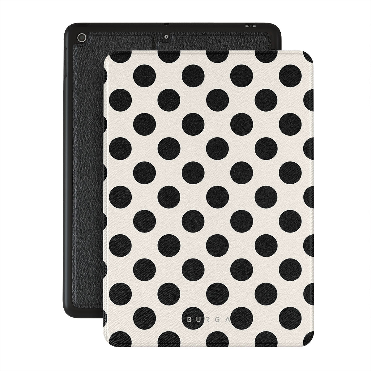 En este diseño: lunares negros sobre un fondo blanco limpio.