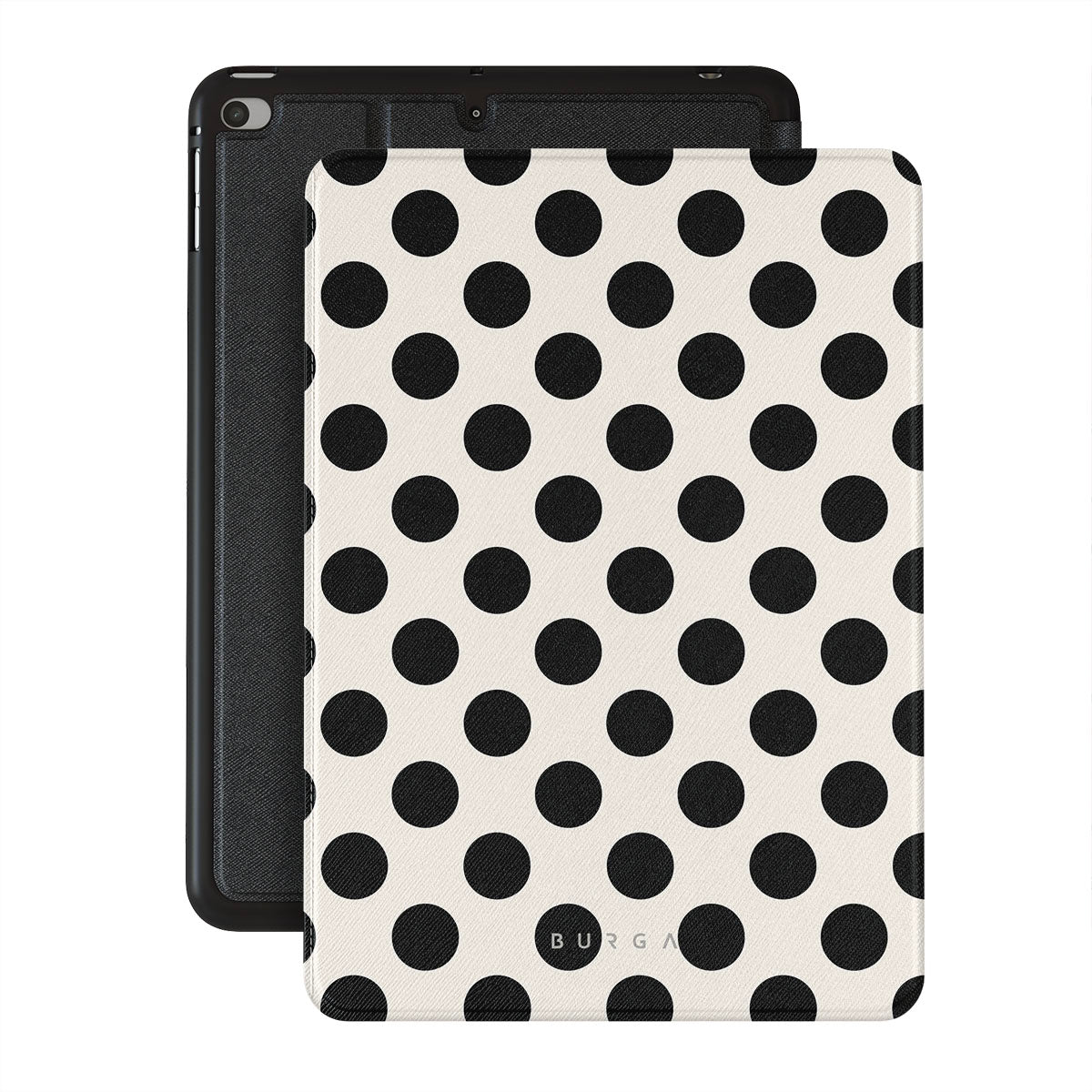 En este diseño: lunares negros sobre un fondo blanco limpio.