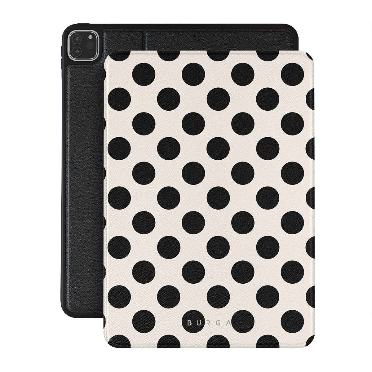 En este diseño: lunares negros sobre un fondo blanco limpio.