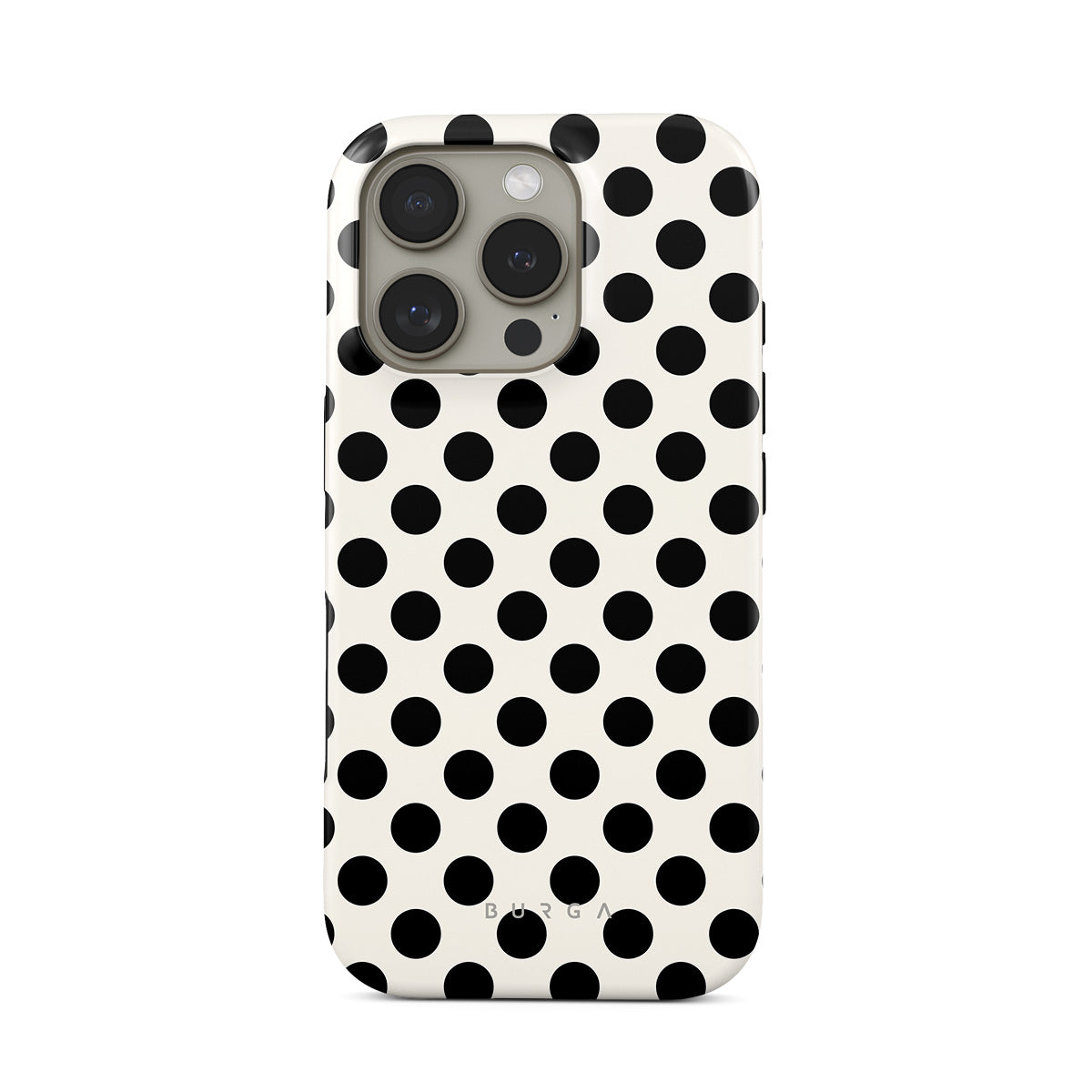 En este diseño: lunares negros sobre un fondo blanco limpio.