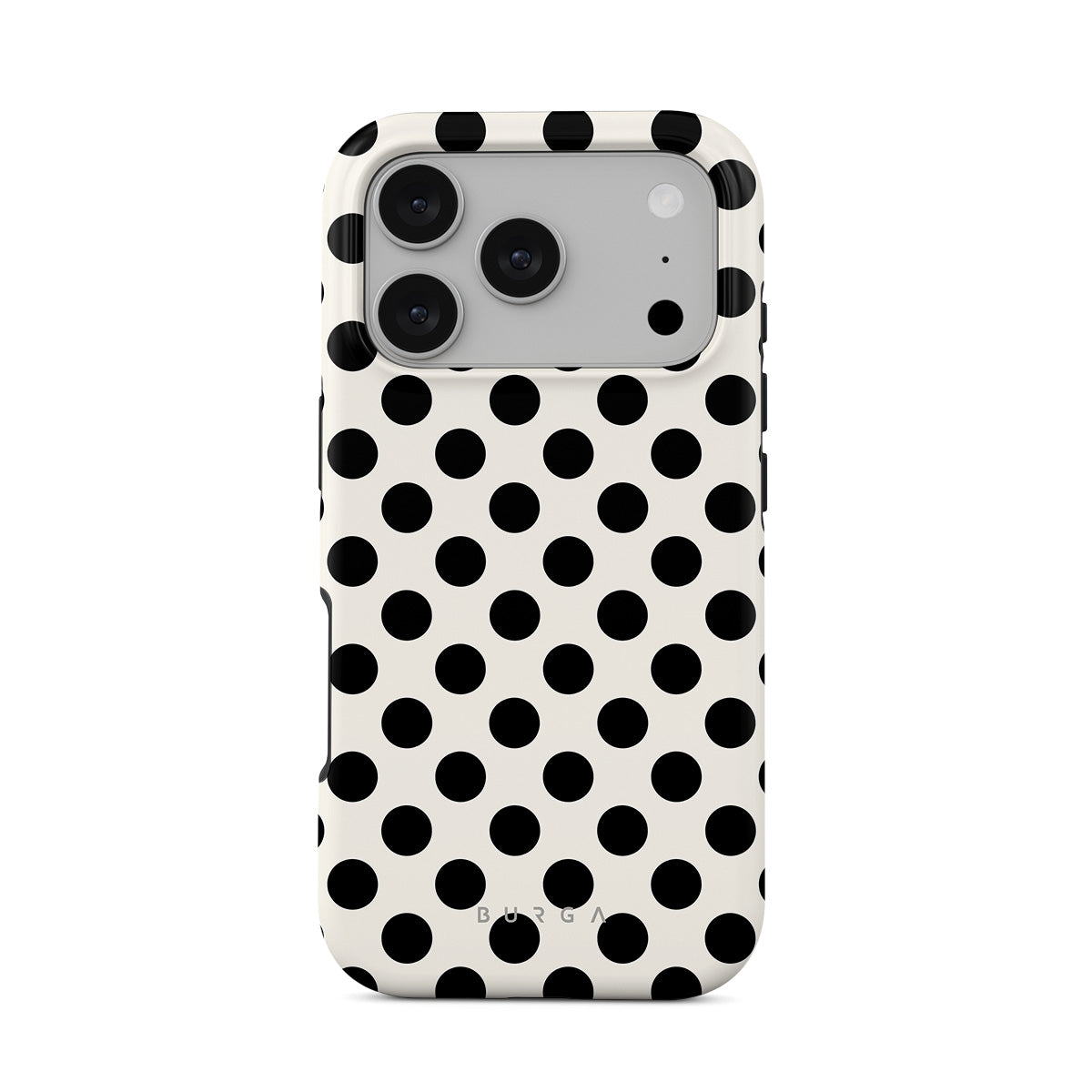 En este diseño: lunares negros sobre un fondo blanco limpio.