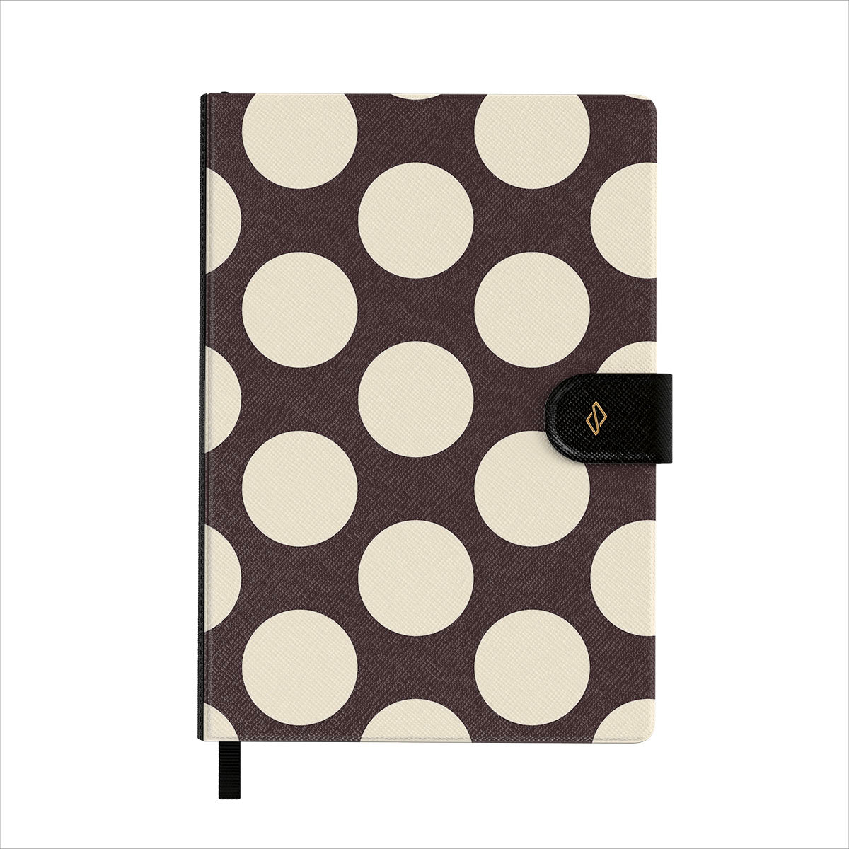 En este diseño: grandes lunares crema sobre un fondo oscuro.