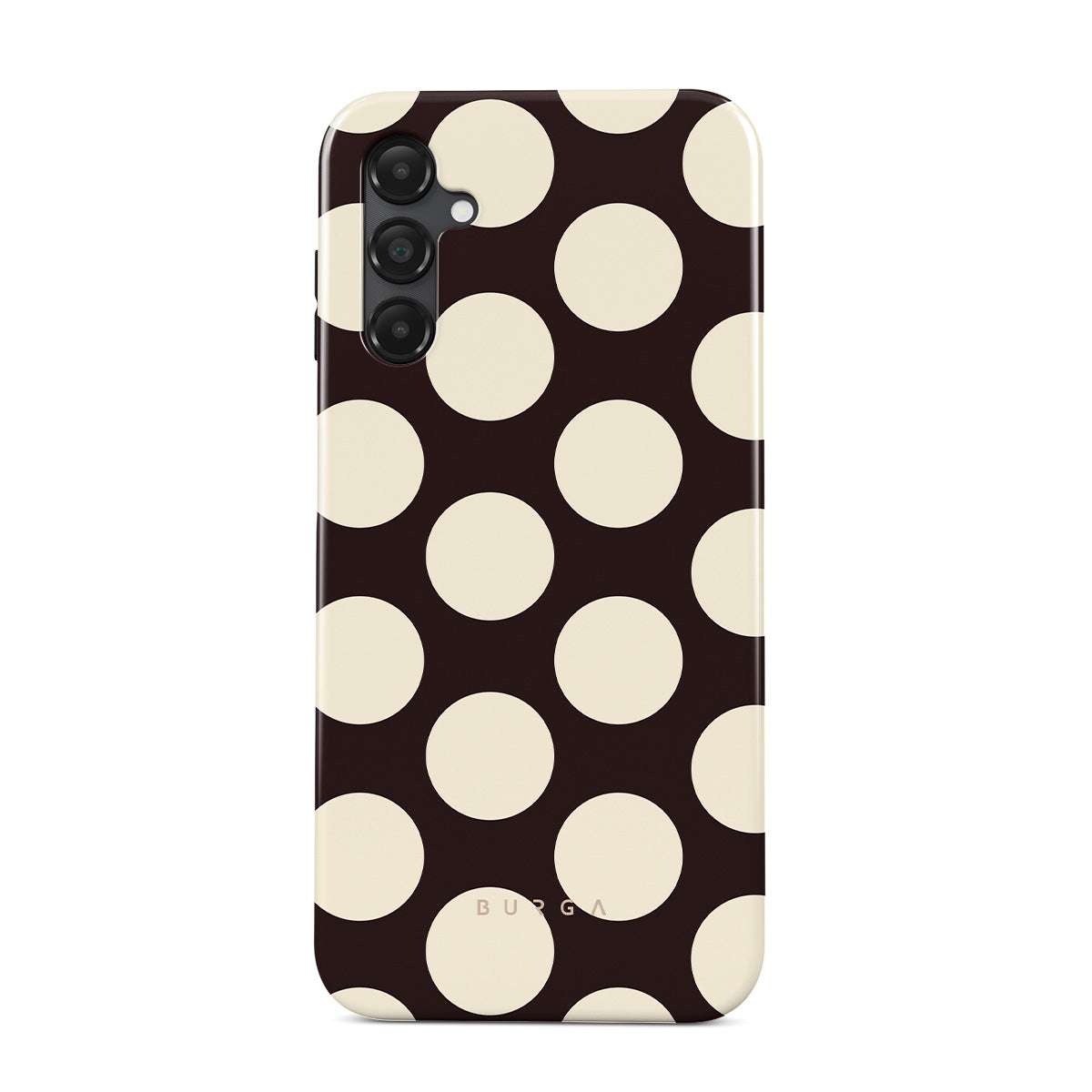En este diseño: grandes lunares crema sobre un fondo oscuro.