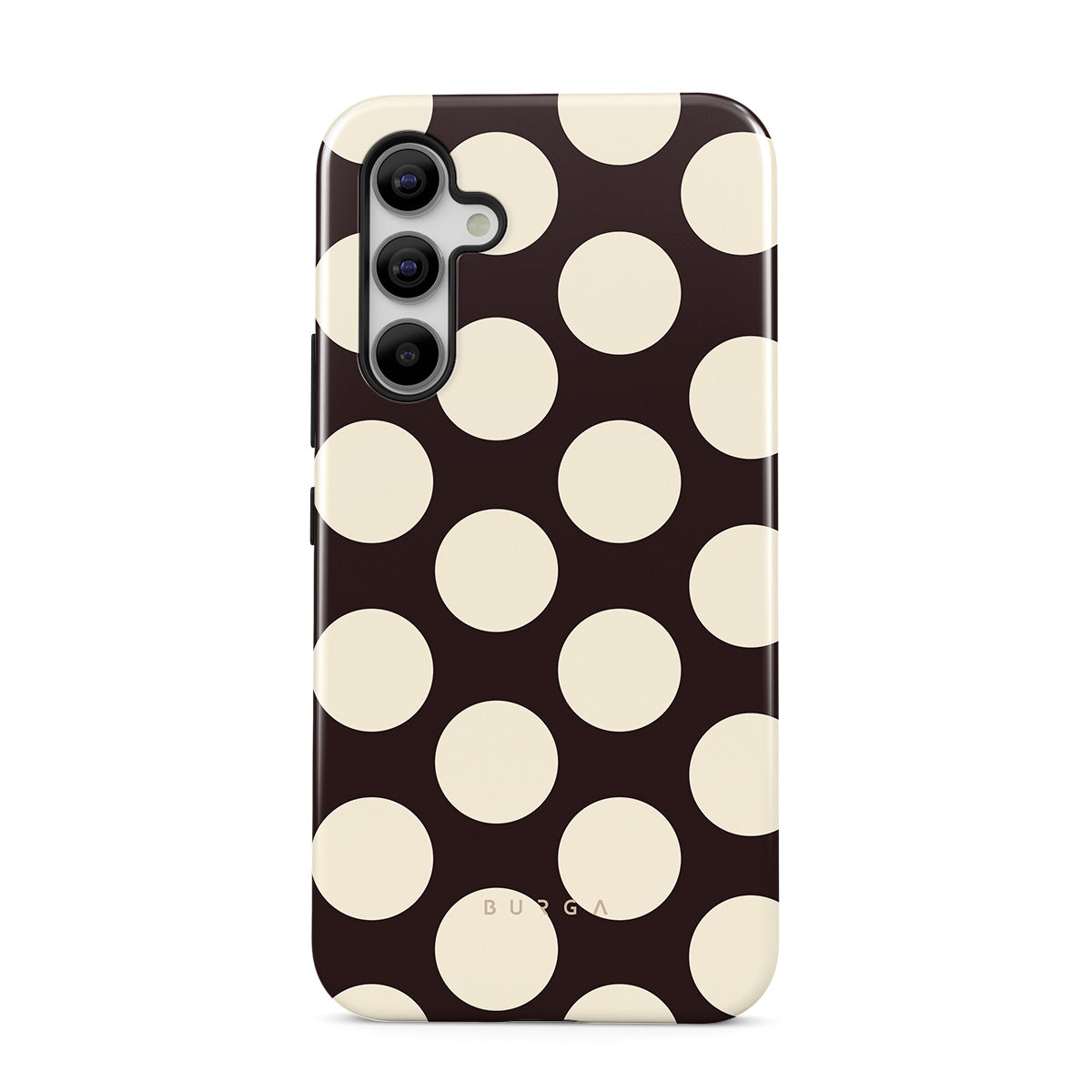 En este diseño: grandes lunares crema sobre un fondo oscuro.