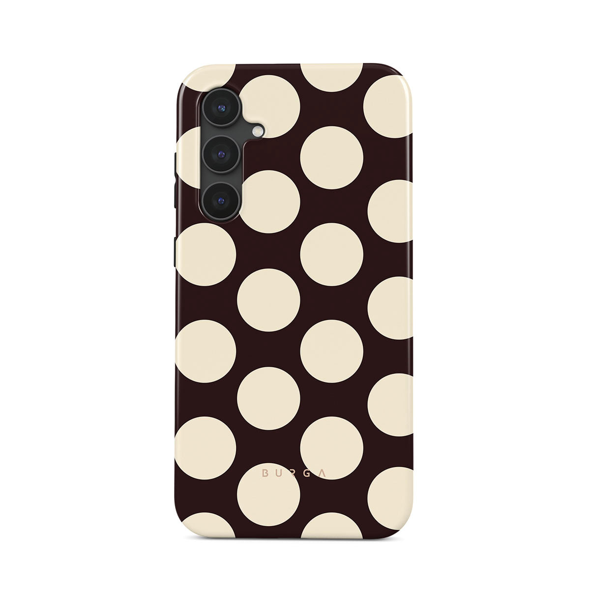 En este diseño: grandes lunares crema sobre un fondo oscuro.