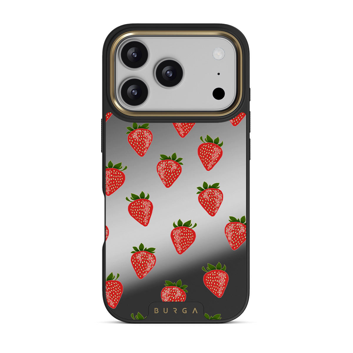 En este diseño: fresas, frutas rojas, bayas, espejo.