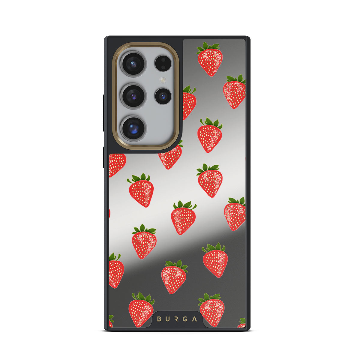 En este diseño: fresas, frutas rojas, bayas, espejo.