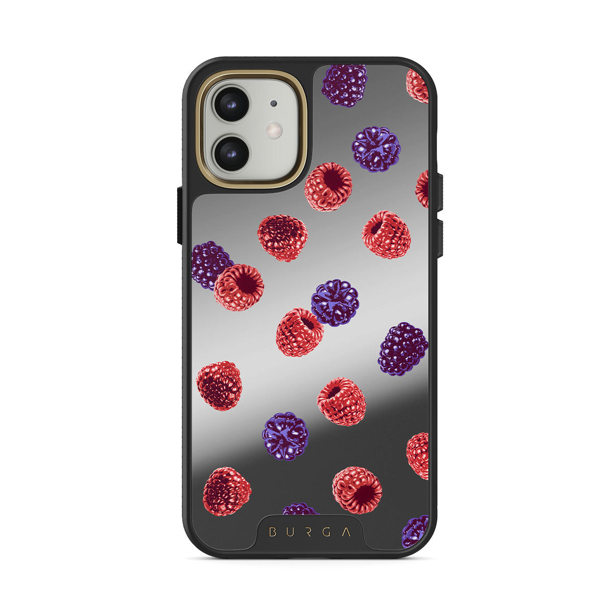En este diseño: bayas, frambuesas, moras, frutas, espejo.