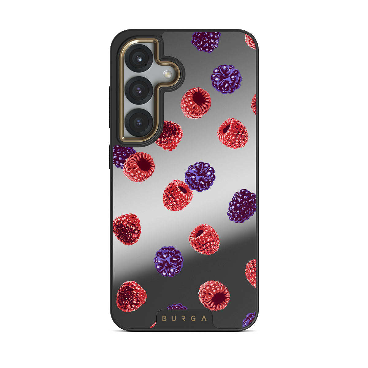 En este diseño: bayas, frambuesas, moras, frutas, espejo.