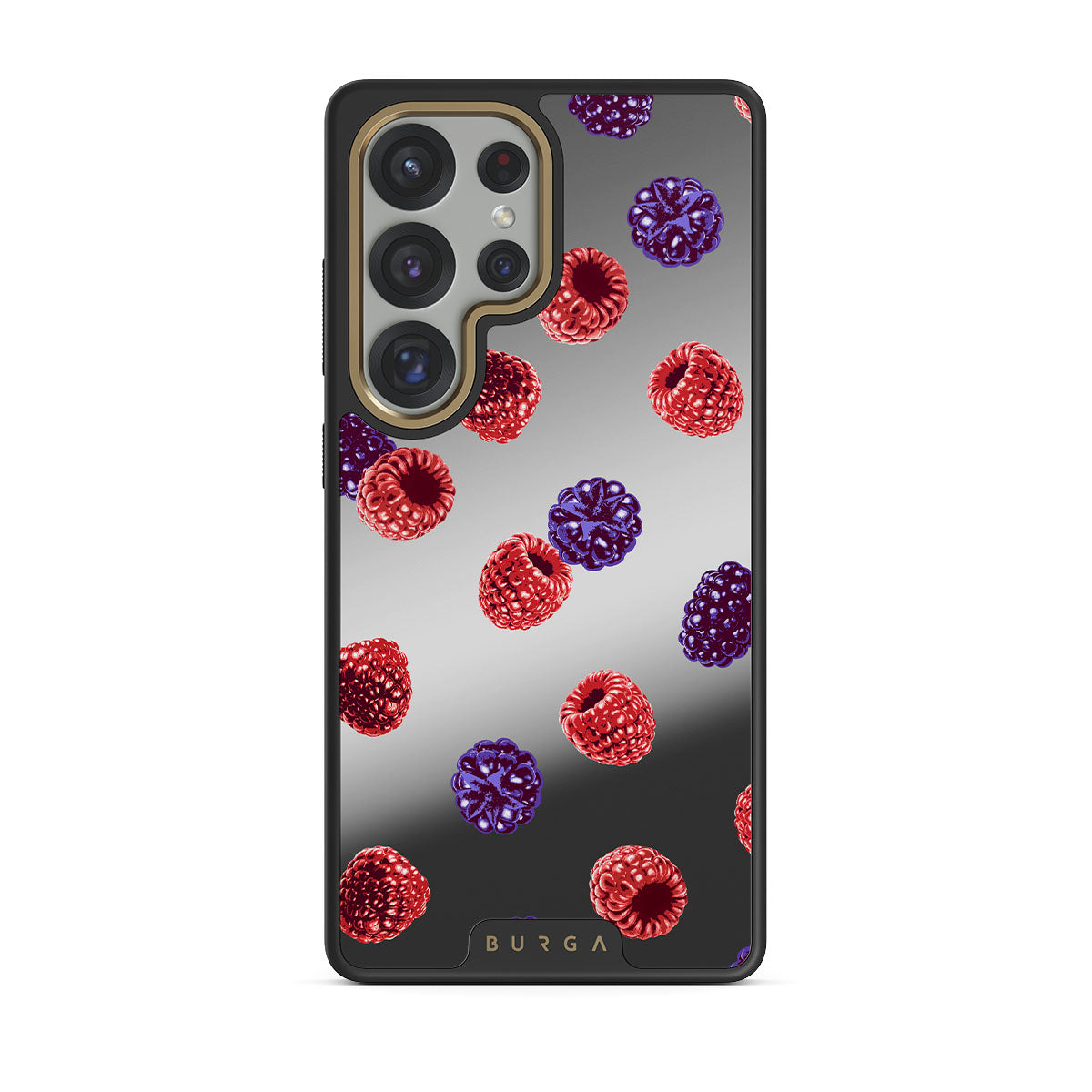 En este diseño: bayas, frambuesas, moras, frutas, espejo.