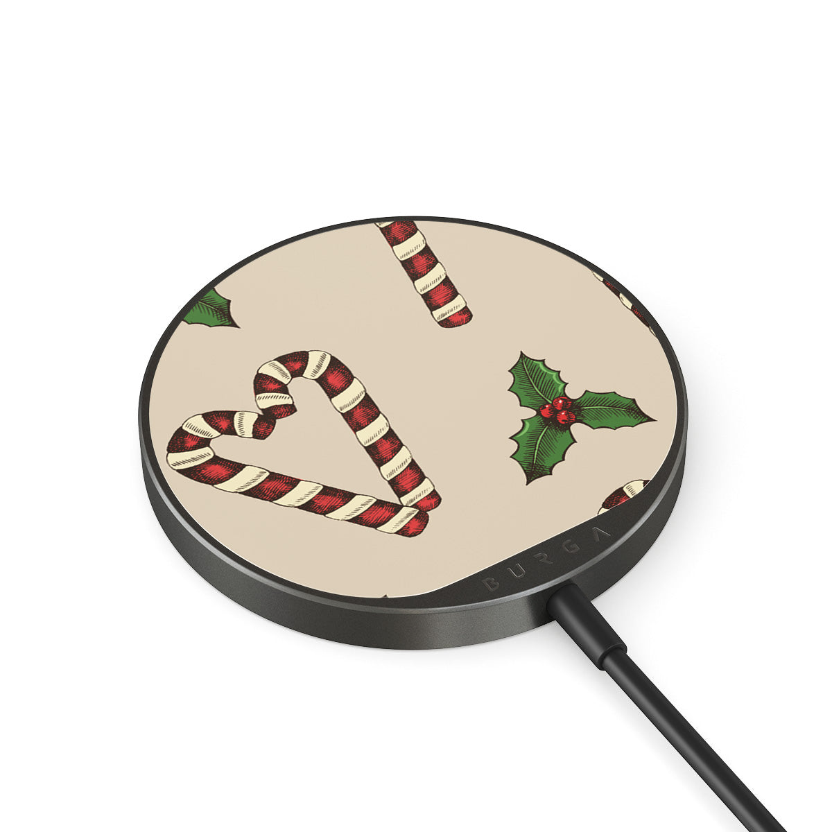 El diseño presenta: bastones de caramelo, acebo, verde, blanco, patrón navideño