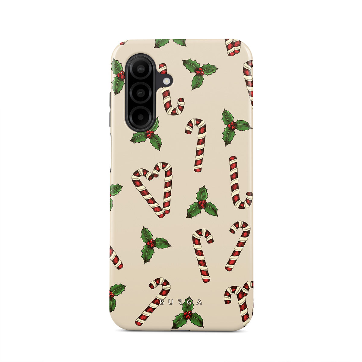El diseño presenta: bastones de caramelo, acebo, verde, blanco, patrón navideño.