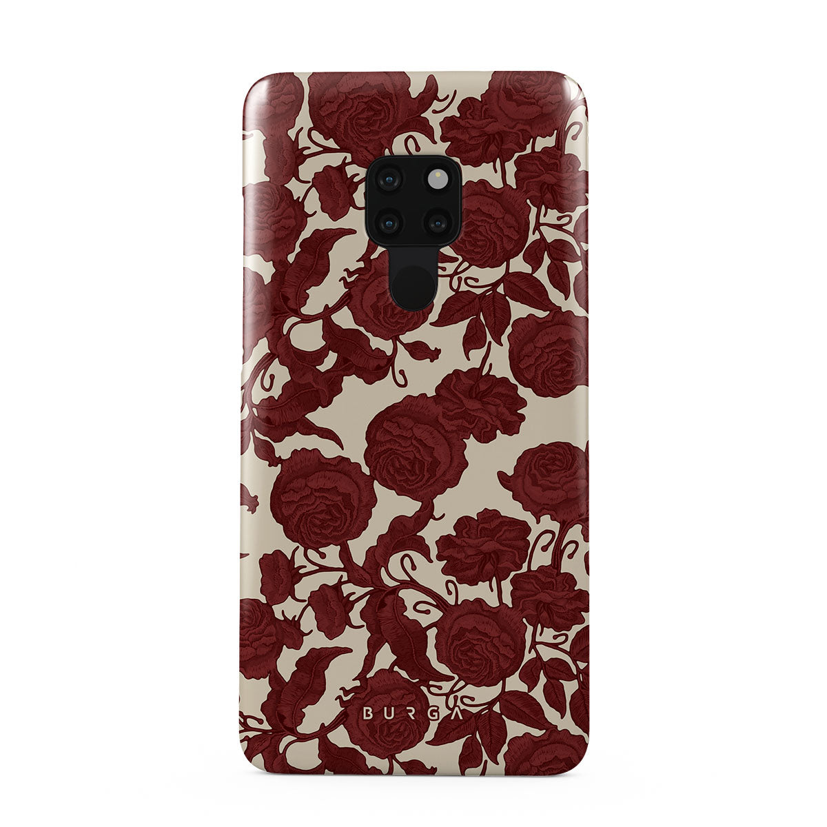 En este diseño: rosas rojo oscuro, patrón floral intrincado y estampado vintage.