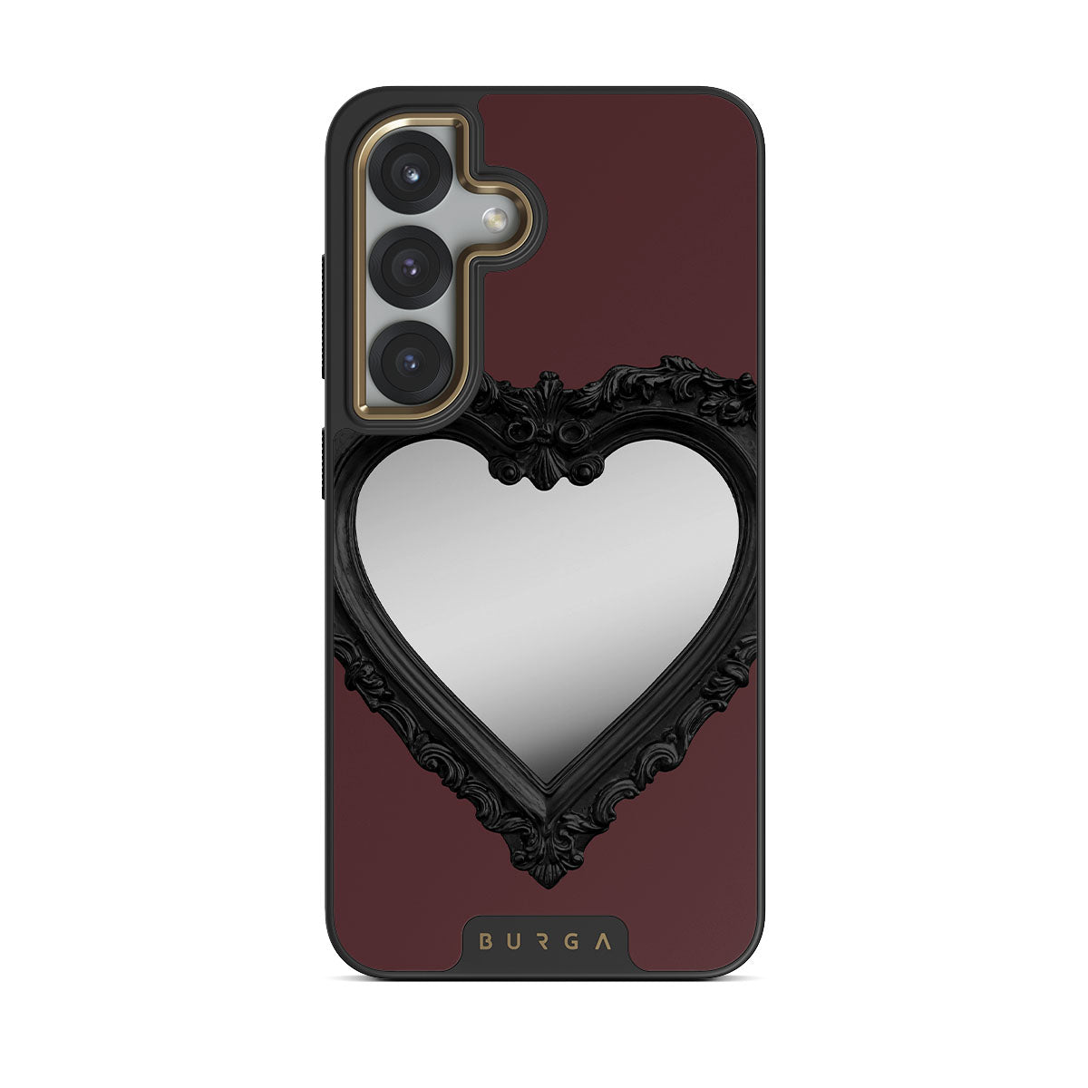 En este diseño: marco en forma de corazón y acabado de espejo.