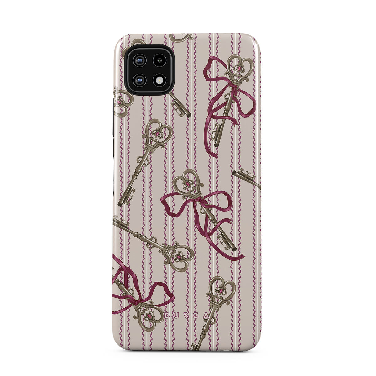 En este diseño: llaves antiguas, moños, cintas rosas, fondo a rayas.