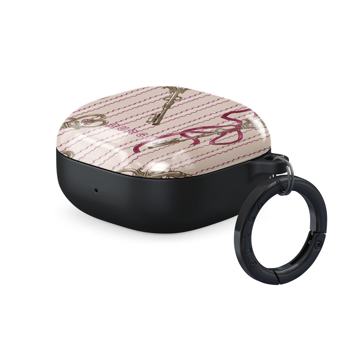 En este diseño: llaves antiguas, moños, cintas rosas, fondo a rayas.