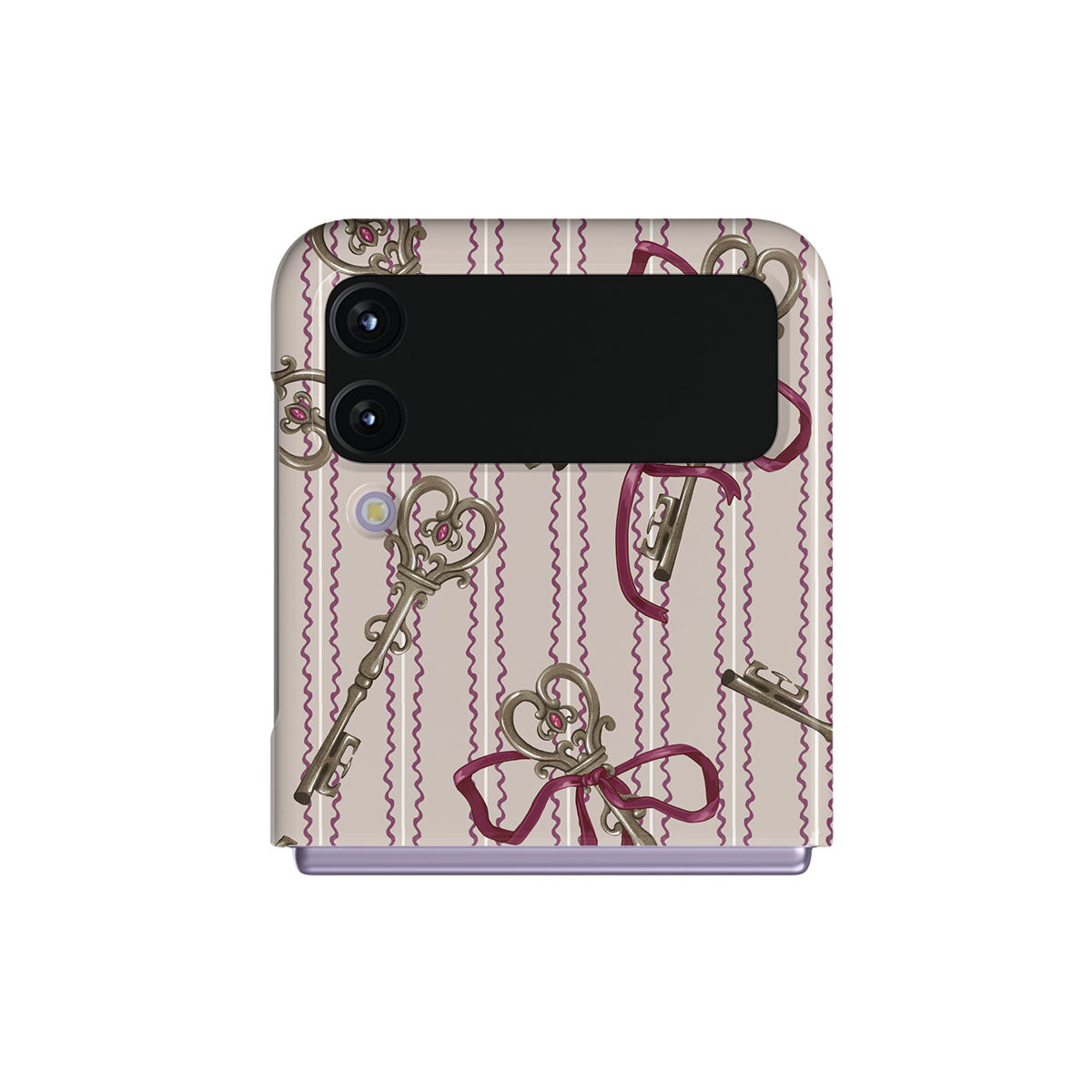 En este diseño: llaves antiguas, moños, cintas rosas, fondo a rayas.