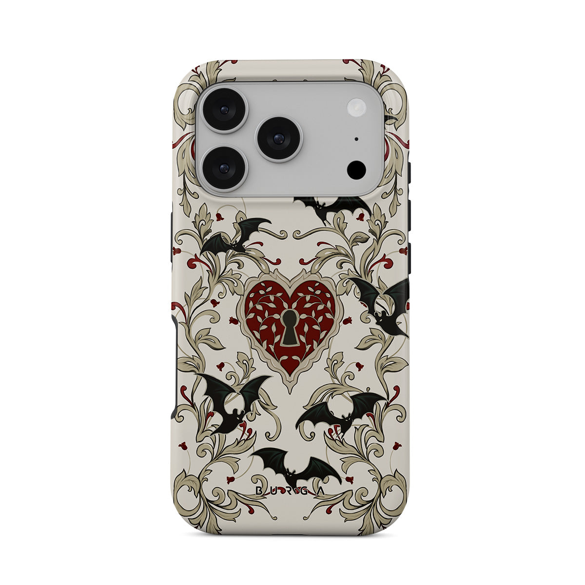 En este diseño: corazón, candado, murciélagos, motivos góticos