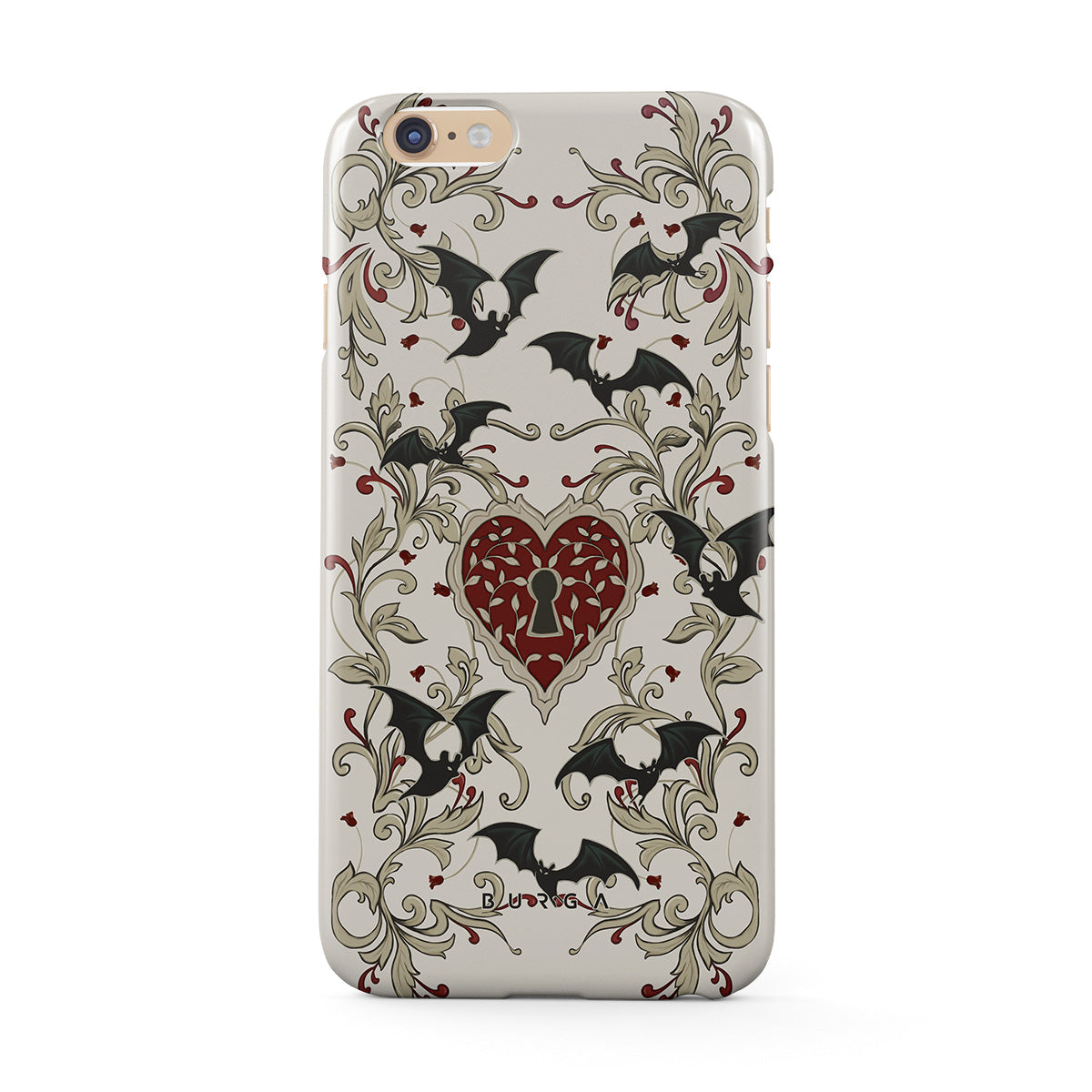 En este diseño: corazón, candado, murciélagos, motivos góticos