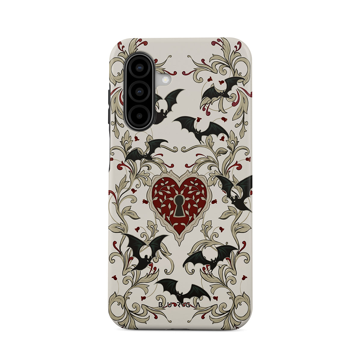 En este diseño: corazón, candado, murciélagos, motivos góticos