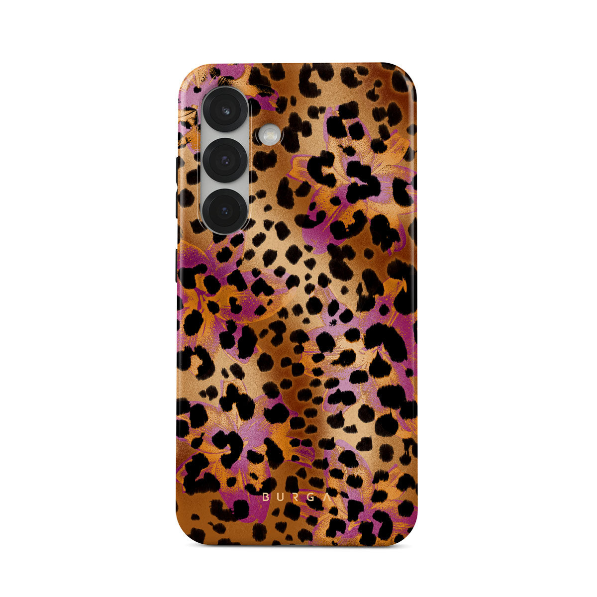 En este diseño: estampado de leopardo, marrón, naranja, morado, estampado animal.
