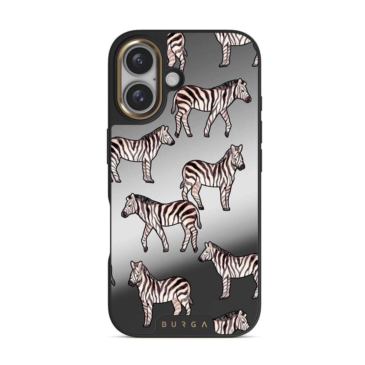 En este diseño: cebras, estampado animal, rayas blancas y negras, espejo.